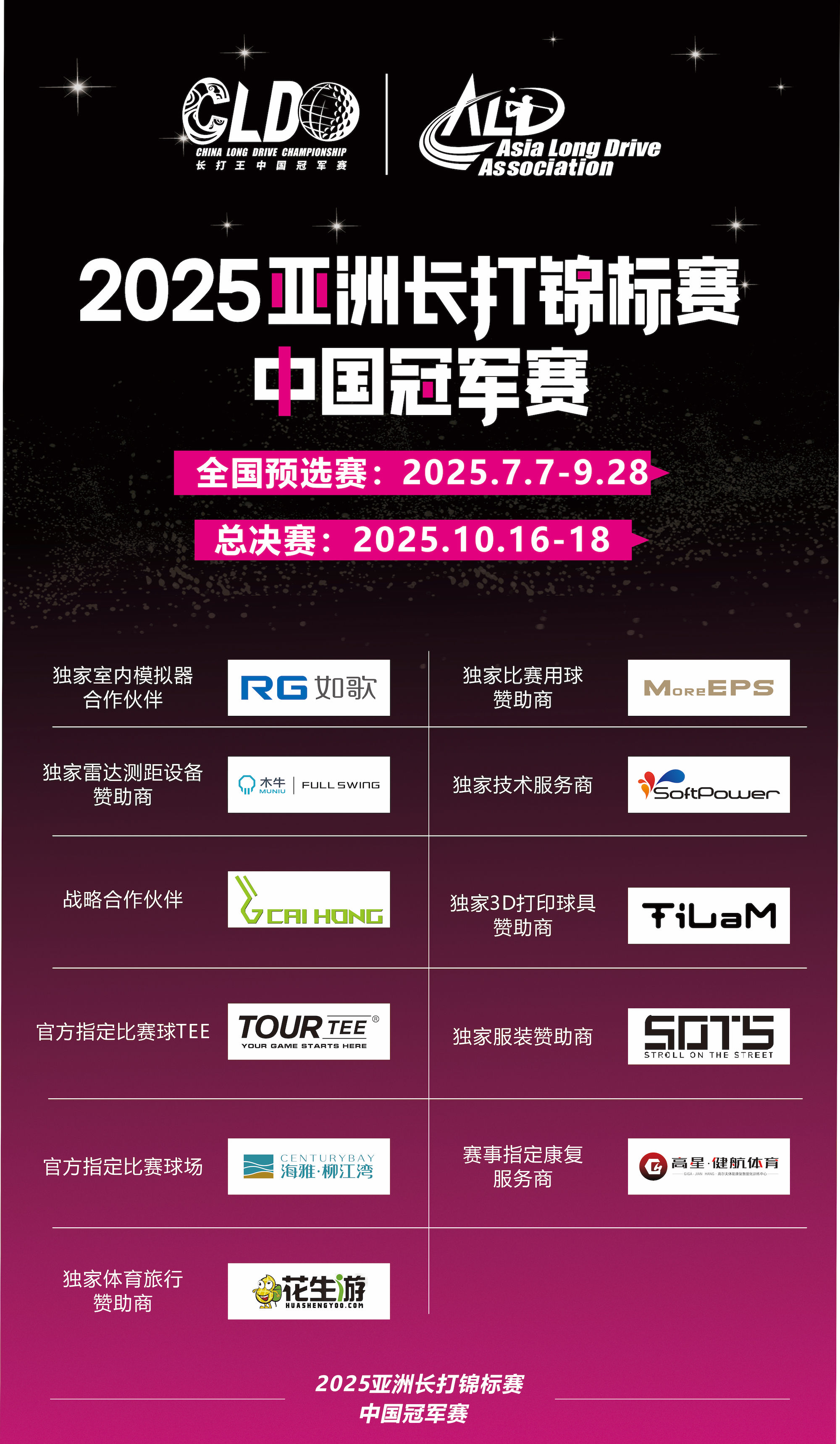 2025长打王中国冠军赛总决赛将于2025年10月6-8日在柳州海雅柳江湾国际高尔夫俱乐部举办,活动日程如下:
