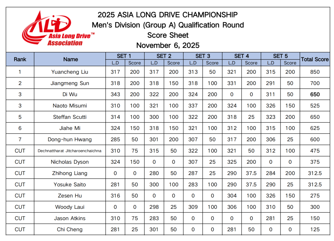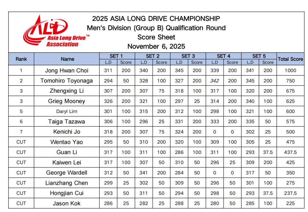 成绩公告 | 2025亚洲长打锦标赛第一天比赛日成绩公告