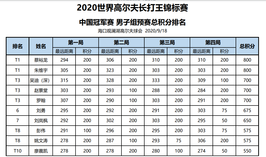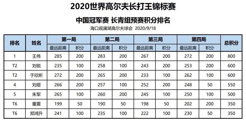 成绩播报 | 2020世界长打王中国冠军赛全国总决赛各组别预选赛成绩播报