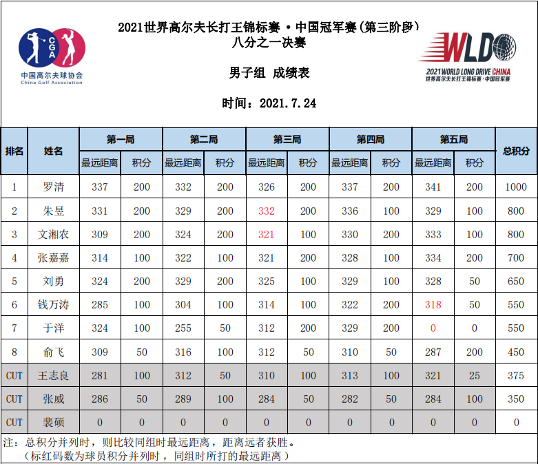 2021世界长打王中国冠军赛第二阶段八分之一决赛于2021年7月24日下午14:00顺利结束,第三张全国总决赛八强门票诞生。本周开始争夺全国总决赛最后一张八强门票。