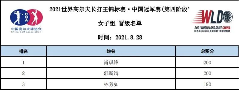 女子组晋级第四阶段八强名单如下: