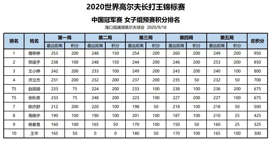 成绩播报 | 2020世界长打王中国冠军赛全国总决赛各组别预选赛成绩播报